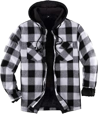 Zenthace Men S Sherpa Lined Full Zip Hooded Plaid Shirt Jacket Clothing Shoes Jewelry